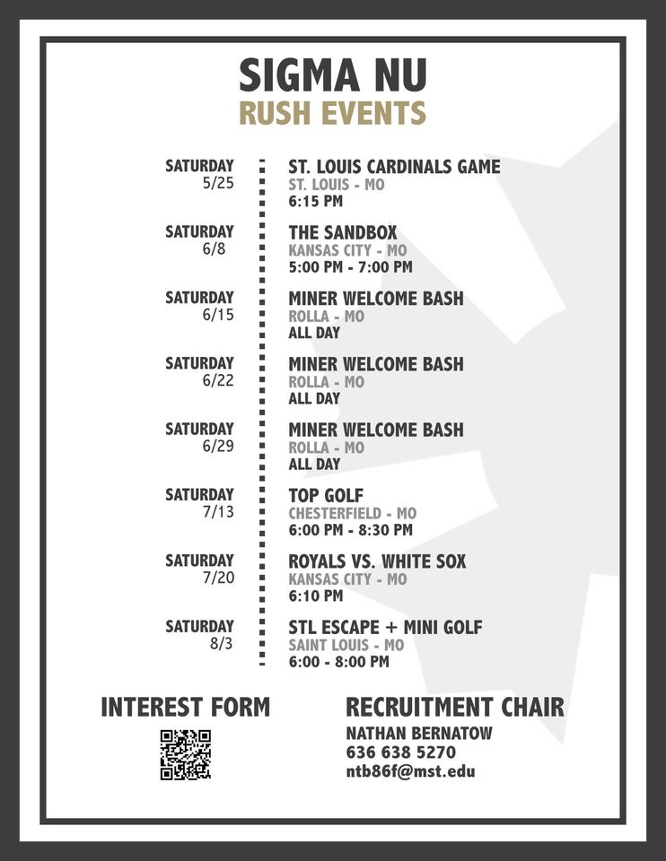 Questions? Contact our recruitment chair Nathan Bernatow at 636-638-5270 or fill out an interest form.